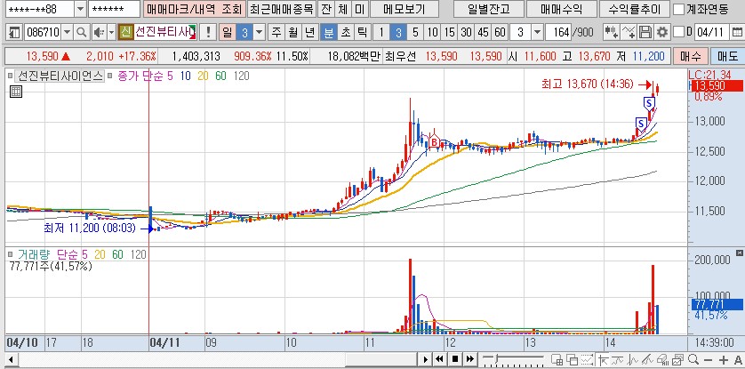 요건 시초가였을꺼 같다 장전 뉴스 확인후 들어가봤다 3.63%수익 재수!