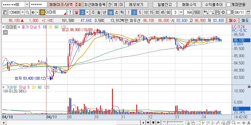 이마트 요것도 장 시작전에 기사 보고 시초가 매수 였나 넥스트였나 1.68% 수익